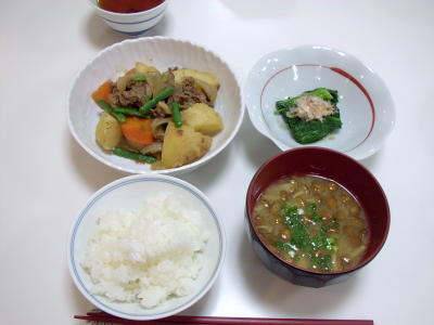 肉じゃがはとーっても上品な味でよかった。汁は少なめで落し蓋をして煮るのだけど、じゃがいもも煮崩れしなくて、ほくほくでこれくらいの肉じゃがってちょうどよい!今度家でチャレンジ!