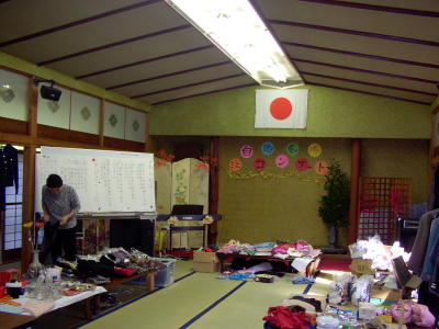 みんなで準備。私は飾りつけ担当。100円ショップで、秋らしいもみじとか買ってきて、急遽即席の飾り付けを作ってみた。
