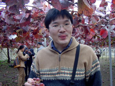 次はぶどう狩りの場所へ移動して、ぶどう狩り。甲州というぶどうだったけど、もう終わりのほうだったみたいで、なってるぶどうもいたんでてあまり食べられなかった。残念。でもおいしかったけど・・。