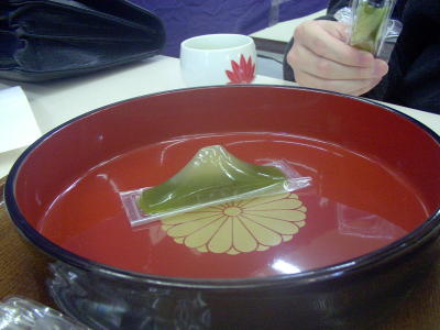 富士山の形のようかんもごちそうになる。これって見たことあるようなないようなお菓子。結構おいしかった☆