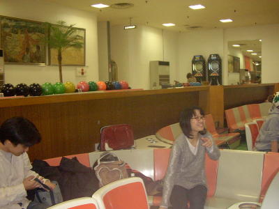 全部で3ゲームやり、最後はレーンごとに対抗戦にした。っていうか今までの成績と、女の子2人入ってるチームということで、相手チームには、120のハンディが与えられたのだが、対抗戦になった途端私たちはがたがた。なんてプレッシャーに弱いのー!!!私もだけど...