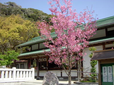 神明神社に咲く、濃い色の桜。