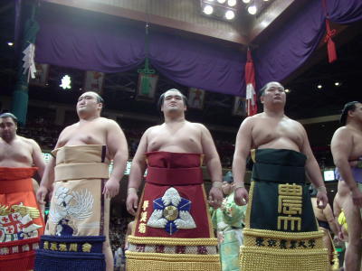 後ろにやたら詳しいおじさんがいて、その人が一緒にいた人に話しているのを、私もまぎれて聞いていたのだけど、盗み聞きしたところによると、高見盛の場合は、懸賞金がすごいから、相手力士に気合が入ってしまって、高見盛は負けてしまうらしい。