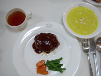 ほっかほかの白いごはんとハンバーグを想像していた私としては、やっぱりパンは残念だった。
