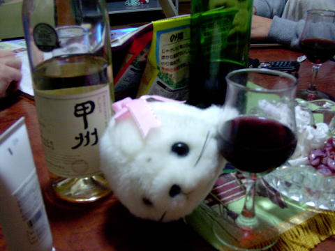 [写真:”わいん”ひとくちでふらふらちびらっこ〜♪♪]