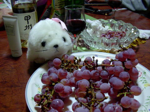 [写真:”甲州”っていうぶどうさんなの。つるんってたべるよ。]