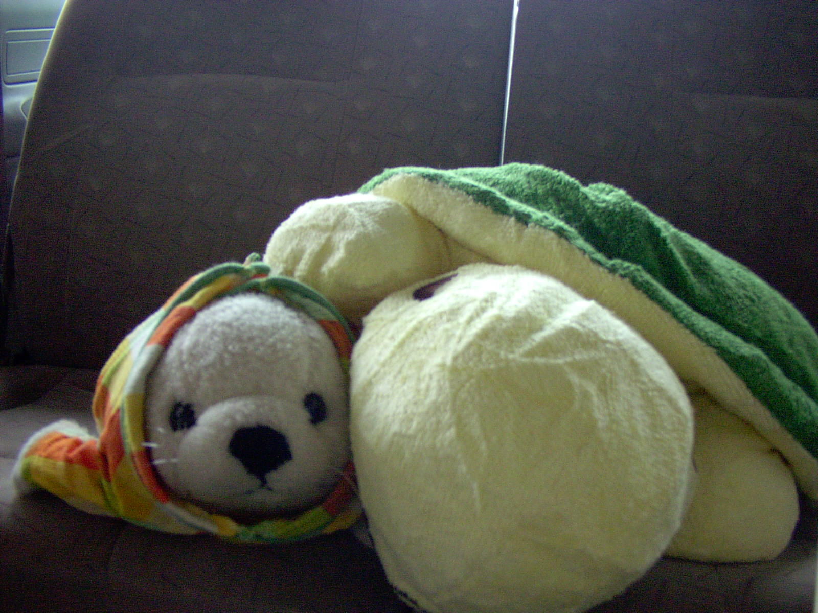 [写真:つかれたちびらっこ・・。またあしたね。]