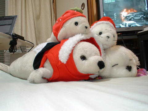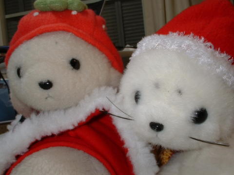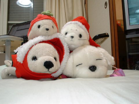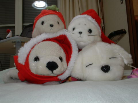 ぬいぐるみたちが集まって、みにくりすますぱーてぃをしたよ。