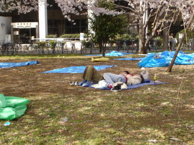 桜の木の下にシートを敷いてただ単に寝そべっているカップルが妙に気になったので、思わず写真を撮ってみた。