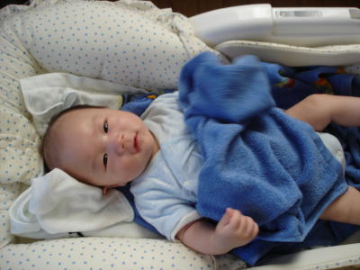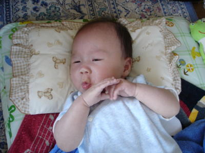ここ数日、起きてるときは大抵手をあわせて見てたり、揺らしたり。
