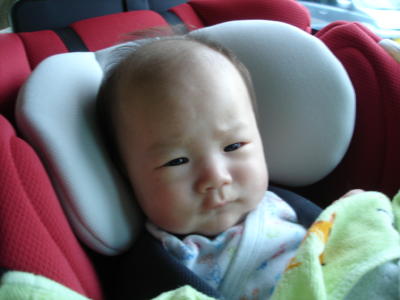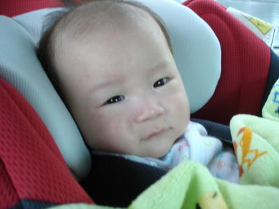 いつも思うけど、チャイルドシートに乗せると顔が変わる。