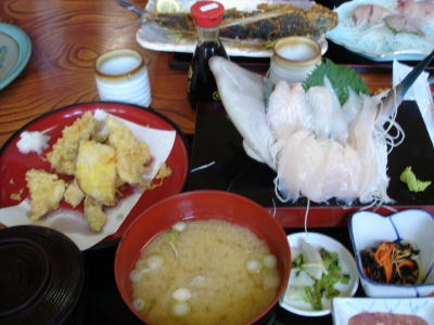 私はなんだか珍しいお魚(名前忘れ)で、口がとんがってるお魚のお刺身だった。