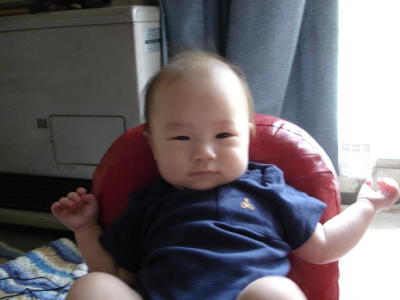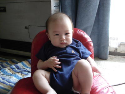 4ヶ月の記念?に、ちょうどいい椅子があったのでお座りしてみた。