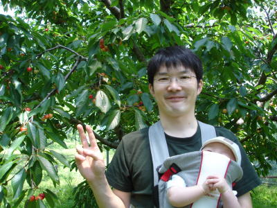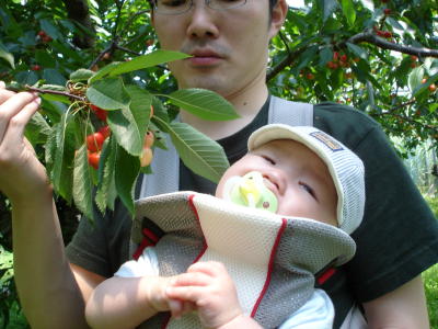 タロウ、初めてのさくらんぼ狩り。