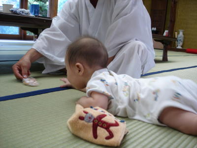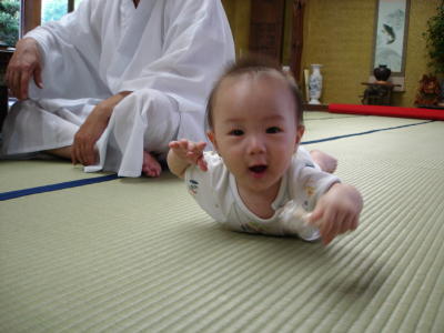 這って進むこつを覚えたようで、欲しいものがあるとどこまでも進んでいく。