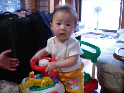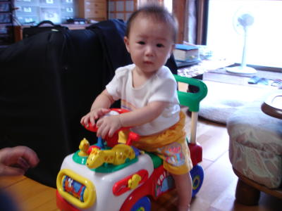 みずきちゃんから頂いた車のおもちゃに乗って遊んだ。