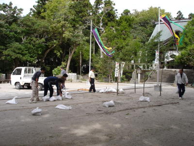 朝から青年の人が明日の例祭のために