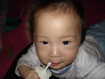 上の歯も生えてきたので、歯ブラシになれるため、ベビー歯ブラシを購入。