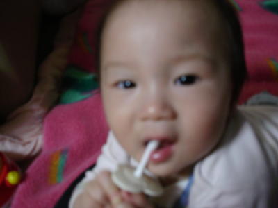 取り上げるまで楽しそうにカミカミしていた。ひょっとしたら自分では大人と同じように歯磨きしているつもりなのかも!?