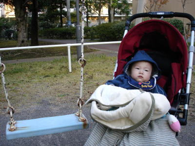 s実家にきていて、今日は午前も午後もベビーカーに乗ってお散歩にいった。