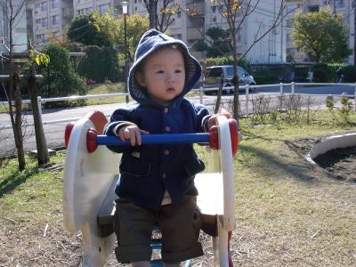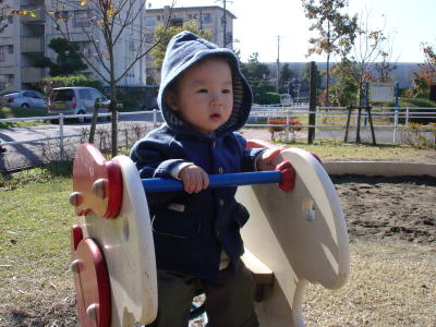 今日はお気に入りの遊具にだれもいなかったので、うさぎさんに乗ることに。
