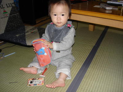 ファンデーションとか全部取り出していじっていて、しまってチャックを締めるとちょっと怒り気味。
