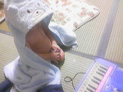 今日は、そのままキーボードにしばらく向かっていた。。。自分がハダカってこと気づいてるのだろうか...