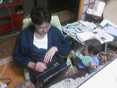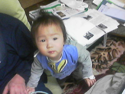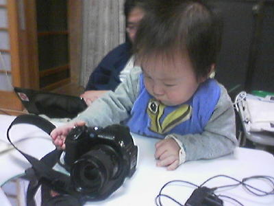 やまパパにハジメを見ててもらうと、パソコンをやっている隣でちょこんと遊んでます。しばらくはおとなしく、だんだんエスカレートしてパソコンやらカメラやらに手をだして、しまいにはやまパパにお仕置きされてます。