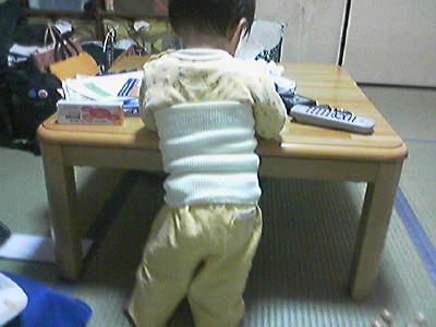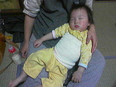 今日はお風呂を私が入れて、やまパパがお着替えなど担当だったのだけど、あがってきたら『大工のげんさん』風に着せられていた!
