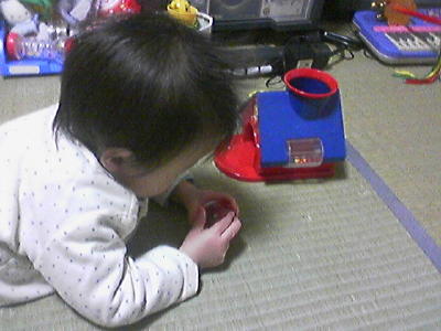 今月は、しまじろうの家がついていて、しゃかしゃかボールを家のえんとつに入れたり、かちかちスイッチをいれたりダイアルを回したり紐を引っ張ったり....いろんな仕掛けのあるお家☆