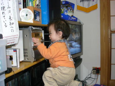 棚の上のCDデッキがずーーっとずーっと気になっていたハジメ。