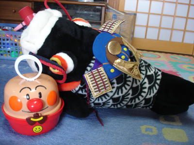 気に入ったようで、私がふた(アンパンマンの顔)の部分を頭にのせるとかなり喜んでいる。