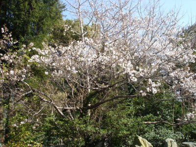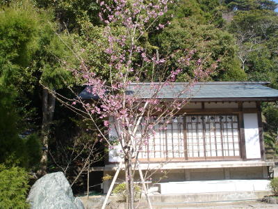 神殿の前の桜は、ほとんど散ってしまっています。かろうじて残っているくらい。