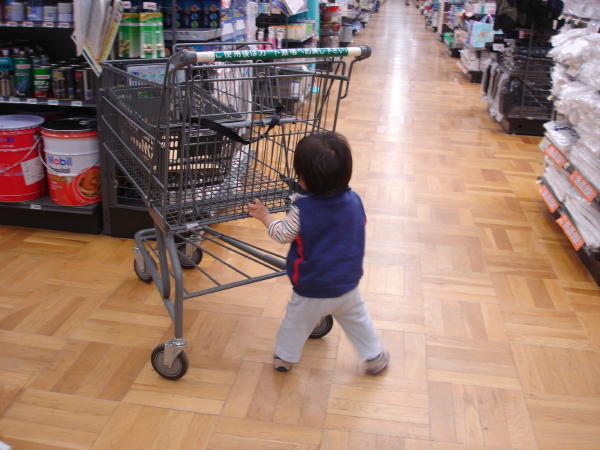 ただ、カートの下の方を押して満足しててくれればいいのだけど、ちゃんと取っ手のところを押したがるので、まいります。