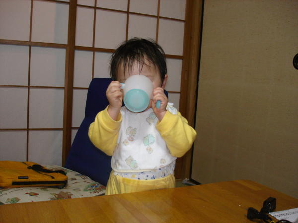 今回はちゃんと飲んでコップを机に戻すという一連の動作がばっちし☆