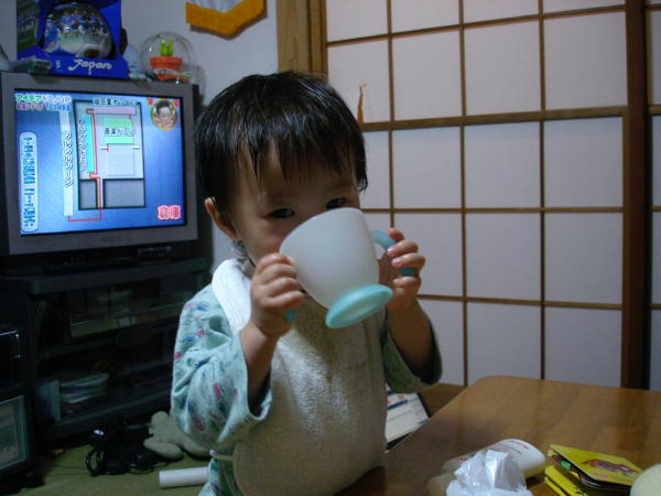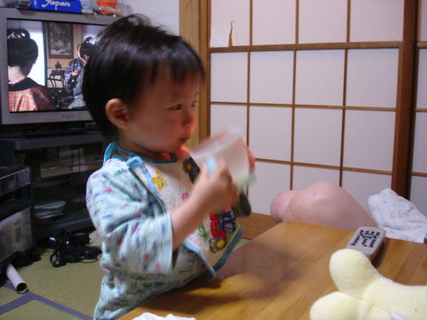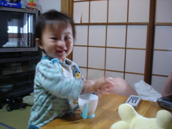 上手に飲んだので、やまパパと二人で拍手をしたら、またまた飲み、またまた拍手・・・。