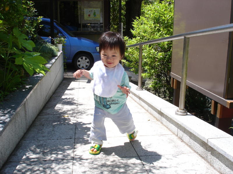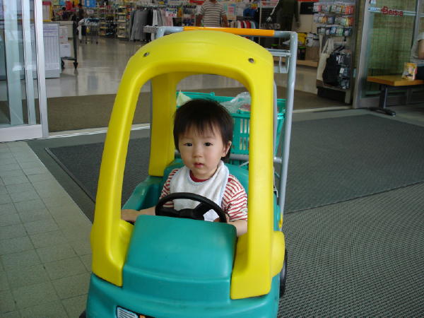 車に乗せてあげると喜んで、運転してました。ハンドル操作もなかなか様になってます。やっぱり車でもよく見てるんだなぁ。