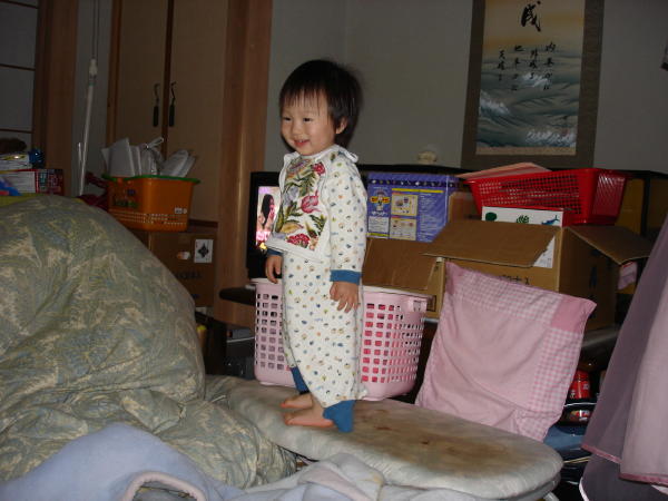 アイロン台にあがって、布団にダイビングにはまって、何度も何度もチャレンジしてました。