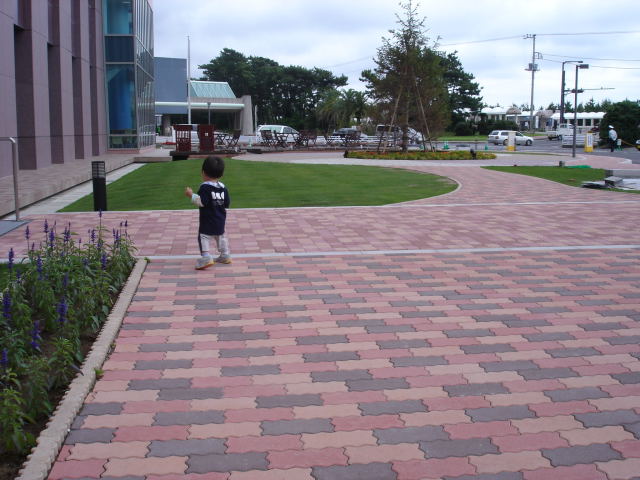ハジメも噴水行ったり、何故か建物の影(おそらく入ってはいけなそうな場所)に行ったり、一生懸命歩いてはっする。
