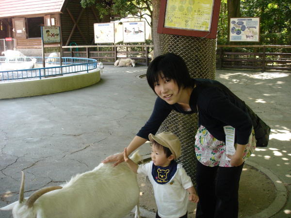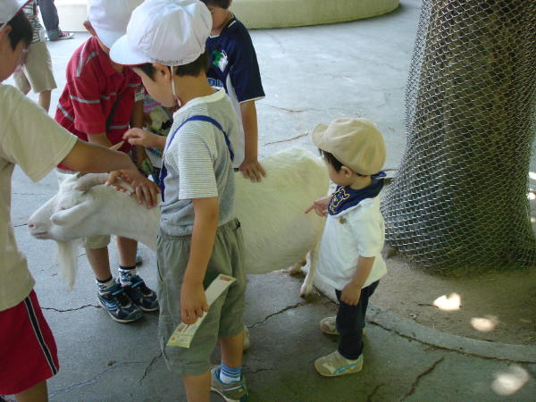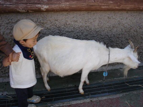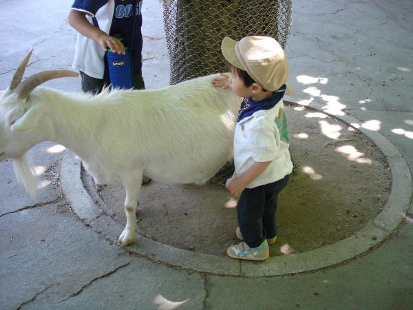 小動物コーナーでは、やぎさんにいいこいいこ。