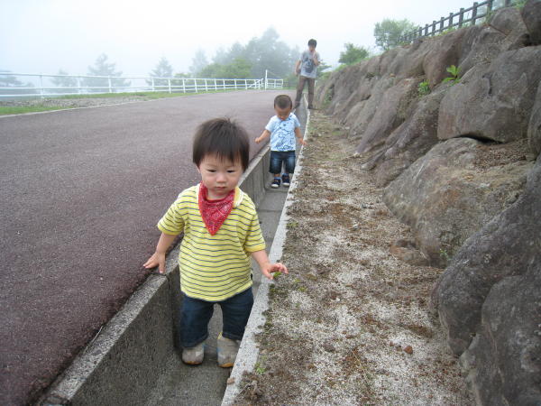車に戻るときは、何故か溝に入って移動していました。子供ってこういうの好きだよね。