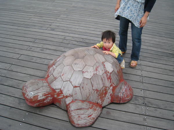 [写真:カメにのりたい・・・]