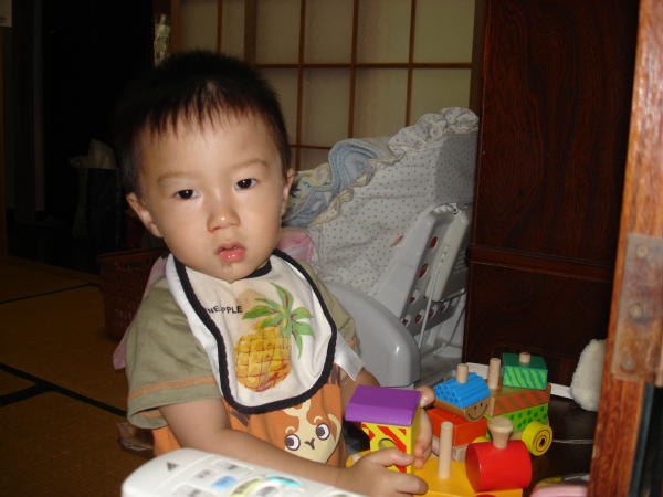 夜、お気に入りの黄色のパジャマを着せたらなんだかしっくりこない。